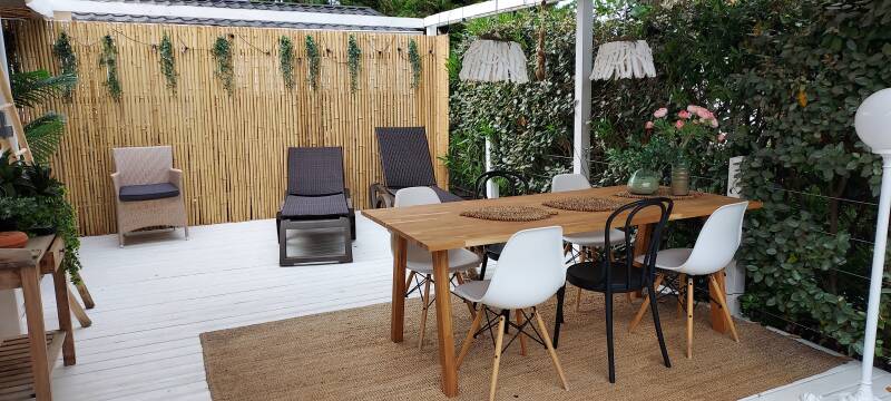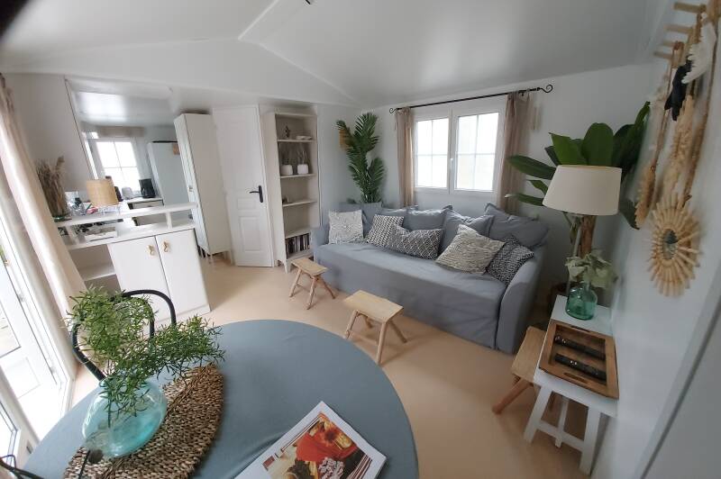 "Mobilhome Anneroos" is a large mobile home equipped with 2 bedrooms with another sofa bed in the living room, Maximum 5 persons and no pets, Nespresso, coffee maker, oven, TV, washing machine, sun beds, baby cot, baby chair, private parking, completely private covered wooden terrace, air conditioning and about 400 metres to the beach.