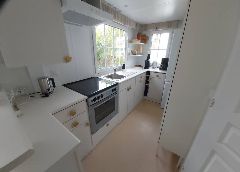 "Mobil-home Anneroos" est un grand mobil-home équipé de 2 chambres à coucher avec un autre canapé-lit dans le salon, Maximum 5 personnes et pas d'animaux, Nespresso, cafetière, four, TV, machine à laver, chaises longues, lit bébé, chaise bébé, parking privé, terrasse en bois couverte entièrement privée, air conditionné et à environ 400 mètres de la plage.